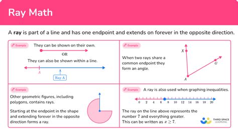 Rays are good for showing angles. Web a ray is a geometric object that begins at an endpoint and extends infinitely in one direction. Because it is infinite, a ray in math cannot be measured.