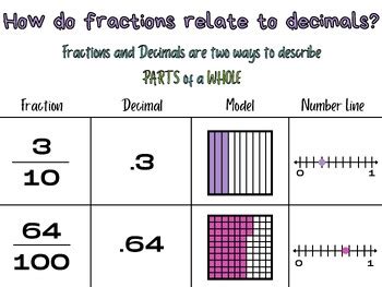 Relating Fractions To Decimals. Split the decimal into its whole number part and the decimal part. This common core aligned fraction matching activity allows students an opportunity to practice relating fractions and decimals in a variety.